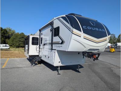 The Keystone Cougar Half-Ton fifth wheel and travel trailers are known as one of America's favorites for a reason! Some of those reasons are the exclusive features that come from Keystone, like the Winegard Air 360+ omni-directional rooftop antenna, the in-floor heating ducts, and the HyperCore composite wall construction with Vixen Fibrogloss high-gloss finish. The Cougar Half-Ton has a Climate Guard protection package with heat-deflecting white sidewalls, two roof attic vents, PEX plumbing and more to enjoy four season camping. Inside, you'll love the dimmable lighting, night roller shades throughout, shower skylight, and bedside USB outlets to keep your electronics charged.