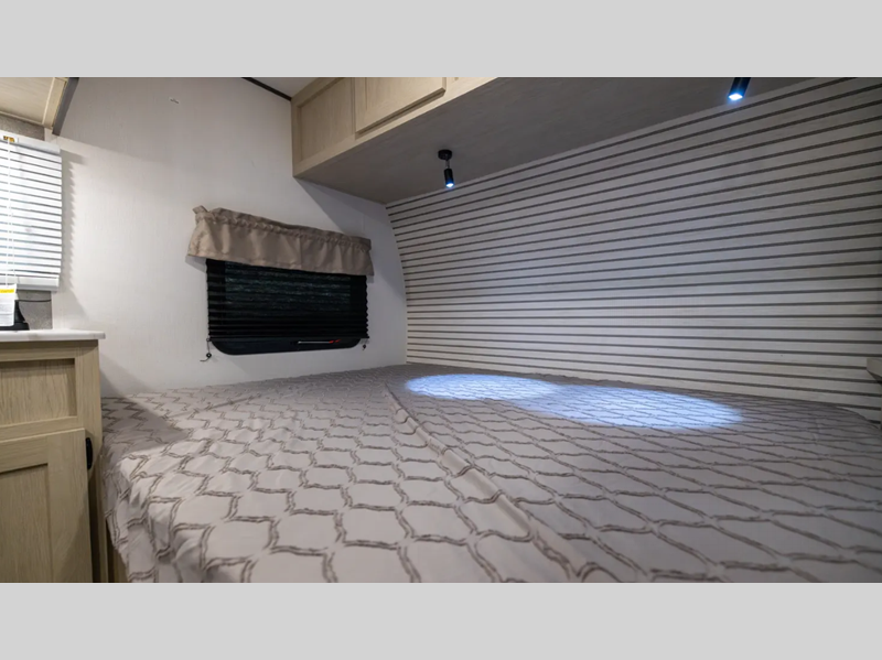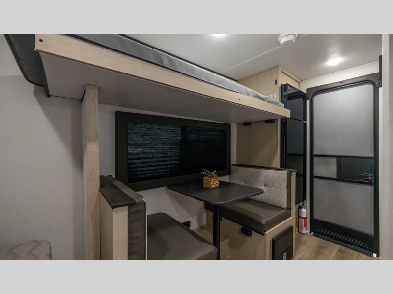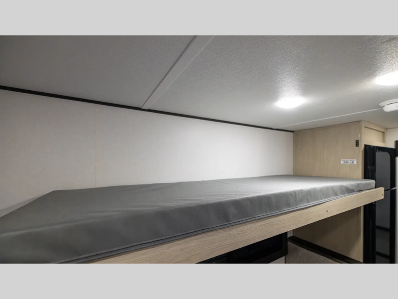 Sleeps 7 Length 22 ft 11 in Ext Width 8 ft Ext Height 10 ft 6 in Hitch Weight 529 lbs GVWR 4829 lbs Dry Weight 3778 lbs Cargo Capacity 1051 lbs Fresh Water Capacity 39 gals Grey Water Capacity 30 gals Black Water Capacity 30 gals Number Of Bunks 2 Available Beds Queen Refrigerator Type Residential Style Refrigerator Size 8 cu ft Cooktop Burners 2 LP Tank Capacity 20 lbs Water Heater Type Tankless AC BTU 8000 btu Axle Count 1 Number of LP Tanks 1 Shower Type Tub/Shower Combo Similar Floorplans